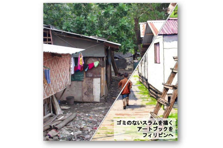 未来を描くアートブック とは、スラムの実際の写真と、ゴミがない未来を描いた絵を一冊にまとめたものです。