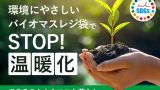 今回配布予定のバイオマスレジ袋は、植物由来の樹脂を原料とした環境にやさしいレジ袋。