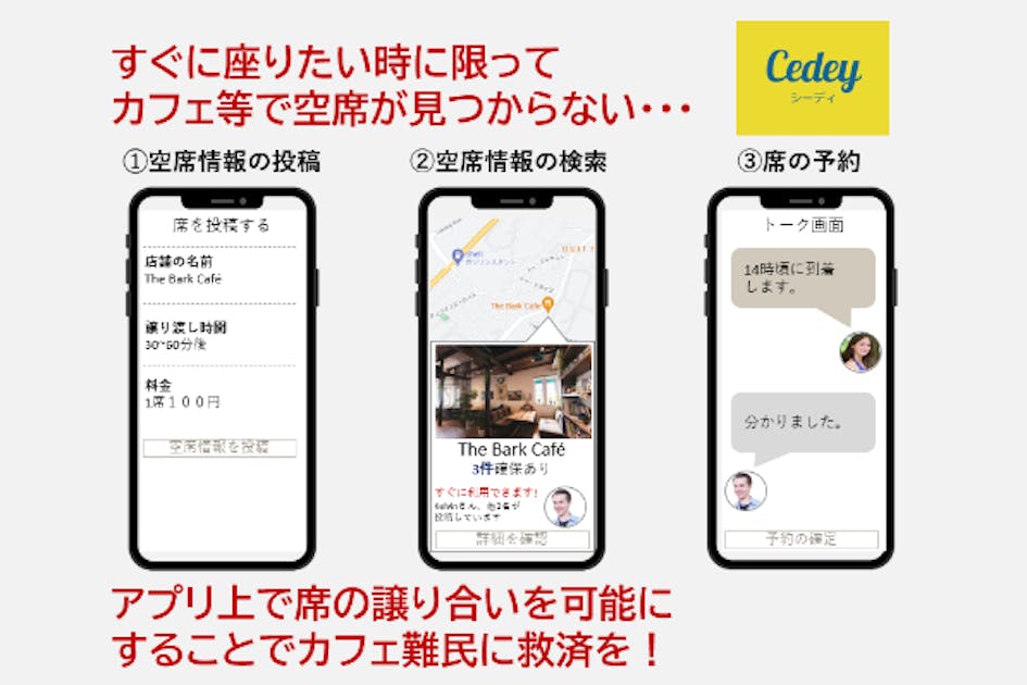 これまではネットで1つ1つお店のサイトを開いて空席状況を確認する、お店に電話する、または直接行くことでしか確認できなかった”空席”が、これからは 『Cedey(シーディ)』で即座に確認することができるようになります。