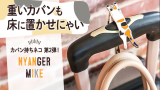 nyanger mikeはカバンを置くスペースがない場所でもテーブルやイスに引っ掛けるだけ。