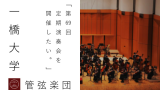 当団は、1919年に創立し、日本のアマチュア・オーケストラとして最も古い歴史を持つ団体の1つです。現在120名程度で活動しており、一橋大学の学生だけでなく、津田塾大学、東京女子大学、東京学芸大学、明治大学など多数の大学の学生が所属しており、様々な分野に秀でた個性豊かな団員で構成されています。