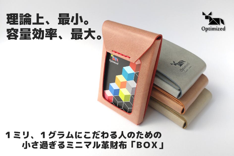 こんにちは。革製品の企画を行っているOptimized(オプティマイズド)です。今回は、今までになく小さくユニークな革財布「BOX」をご紹介します。